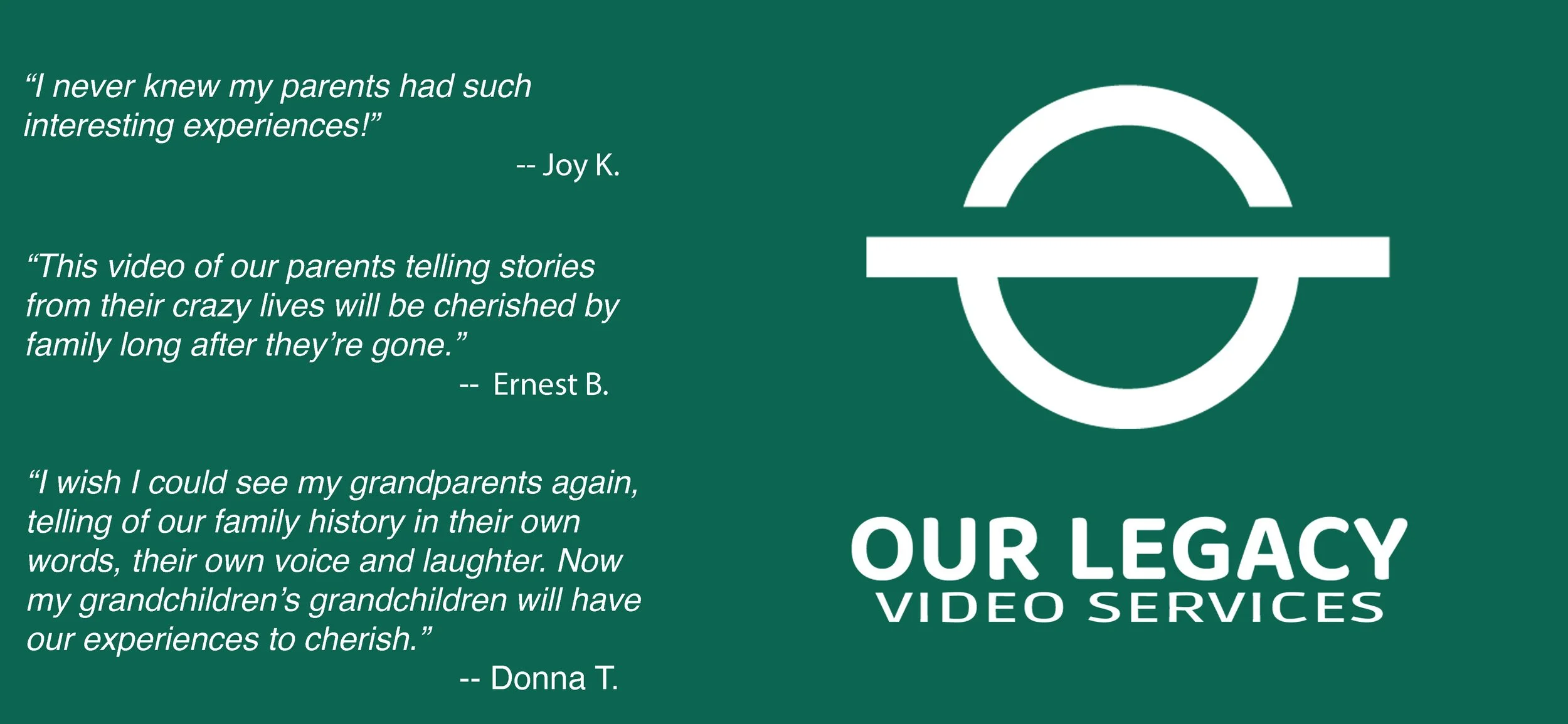 A full-service Video Production in the comfort of your own living space. We provide the Lights, Camera, Sound, Atmosphere and Guidance. You provide the memories, joy and laughter. Together, we create a Video Account of your family history, stories, and life lessons in your own voice. It is a Priceless Heirloom that your family will cherish forever.